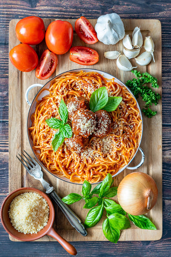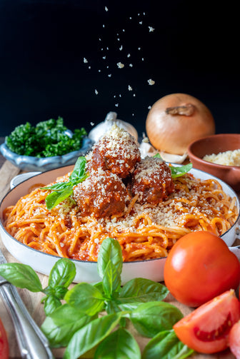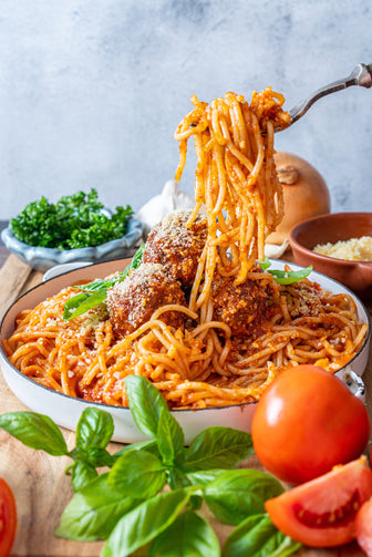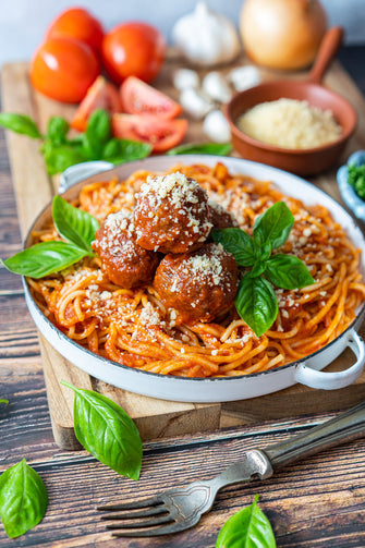 Spaghetti with our own Beefy Meatballs and Tomato Marinara Sauce