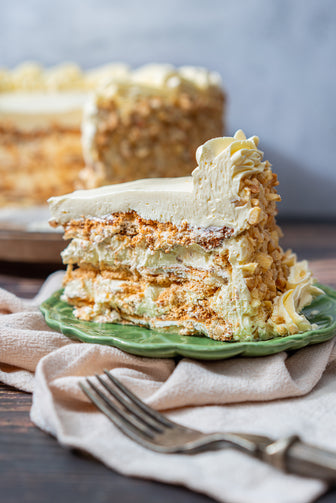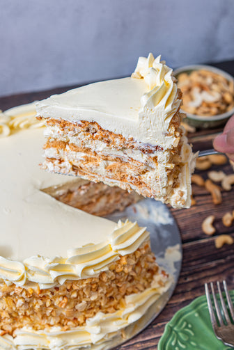 Crisp cashew meringue layered with buttercream